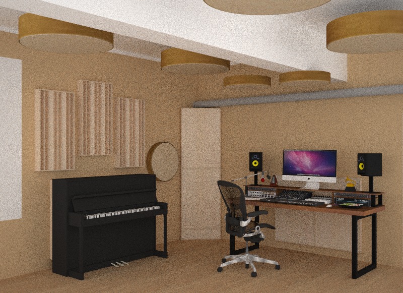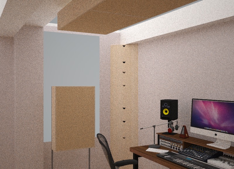 Room acoustics design and installation for Recording Studios in Weißensee – Berlin. The treatment concept features tailor-made porous absorbers, resonant panels, Helmholtz resonators and Quadratic Residue Diffusers.